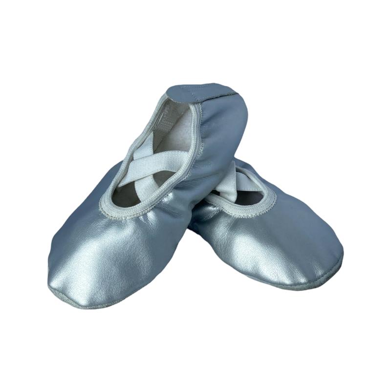Балетки красивого серебристого цвета станут незаменимым помощником в создании выразительного образа танцора. Обувь аккуратно сидит на ноге. Мягкая, эластичная резинка не натирает и надежно закрепляет изделие на ноге, вне зависимости от подъема стопы. Основной материал - искусственная кожа, прошиты, имеют длительный срок носки. Гибкая подошва обеспечивает хорошее сцепление стопы с полом, отлично пропускает воздух и устойчива к истиранию. Универсальный цвет и дизайн подойдёт под любой образ для танцев. Благодаря широкому размерному ряду можно без труда найти обувь по ноге. Характеристики: